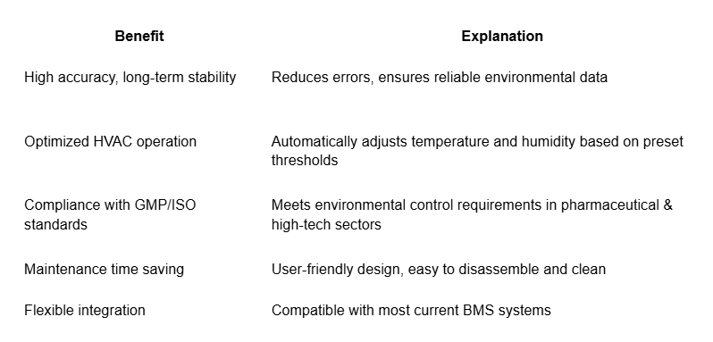 The Dwyer RHP-3N44 sensor not only provides high-precision temperature and humidity monitoring but also enhances operational efficiency in cleanroom environments. It is an essential device for international-standard BMS, HVAC, and manufacturing systems.