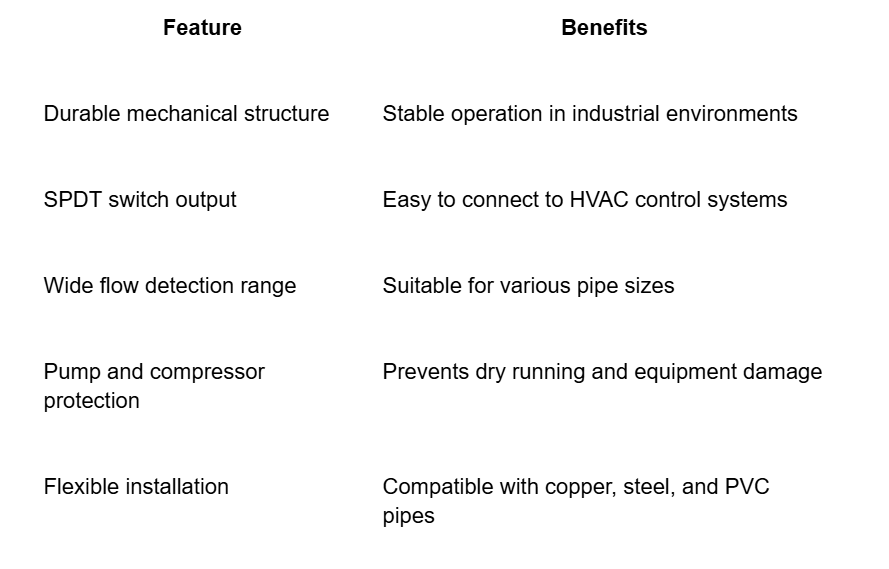 This mechanism enables precise detection of water flow status, helping protect pumps, compressors, and valves in both HVAC and industrial systems.